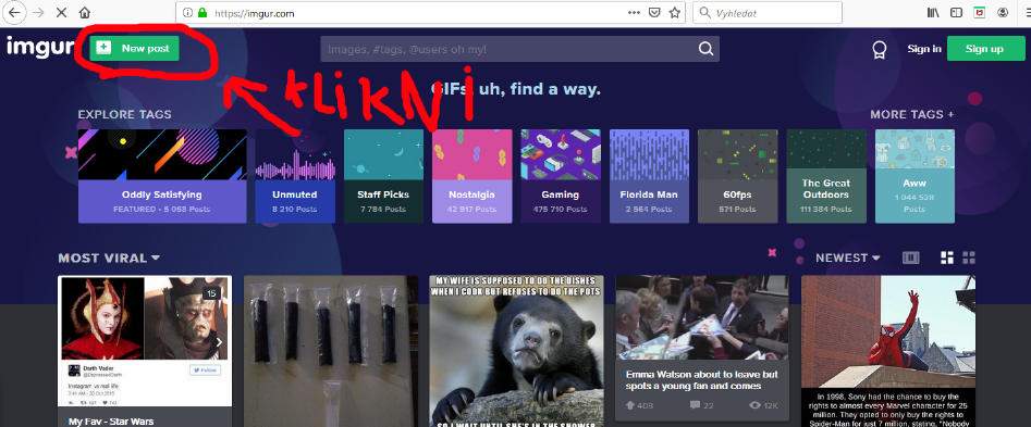 Poté jak vidíte na obrázku kliknete na tlačítko new post.